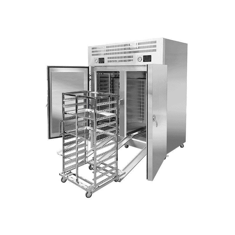 空气速冻机是一种利用强力风扇将冷空气吹向食品的冷冻设备,从而快速降低食品温度。这种冷冻方法也被称为强制空气冷冻或速冻。冷空气在一个封闭的循环中流动,确保整个冷冻机内的温度均匀一致。食品产品通常放置在托盘或架子上,使冷空气能够在其周围自由流通,从而实现快速而高效的冷冻效果。